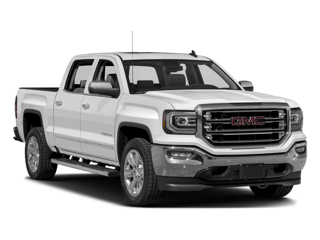 Onyx Black 2018 GMC Sierra 1500 SLT 4WD 8-Speed Automatic EcoTec3 5.3L V8 Bluetooth®, Wireless Hands-Free, Back-up Camera, Wirless Apple CarPlay, 8-Speed Automatic, 4WD, Jet Black Leather, 20 x 9 Chrome Clad Aluminum Wheels, 6 Rectangular Chromed Tubular Assist Steps.